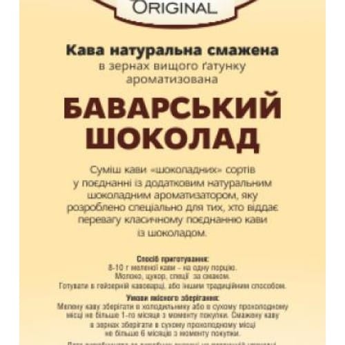 Original «Баварський шоколад» – це смачна суміш кави з «шоколадними» сортами, яка має додатковий натуральний шоколадний ароматизатор. Цей продукт ідеально підходить для тих, хто любить класичне поєднання кави з шоколадом. Спробуйте цю ароматизовану каву і насолоджуйтесь баварським шоколадним смаком!